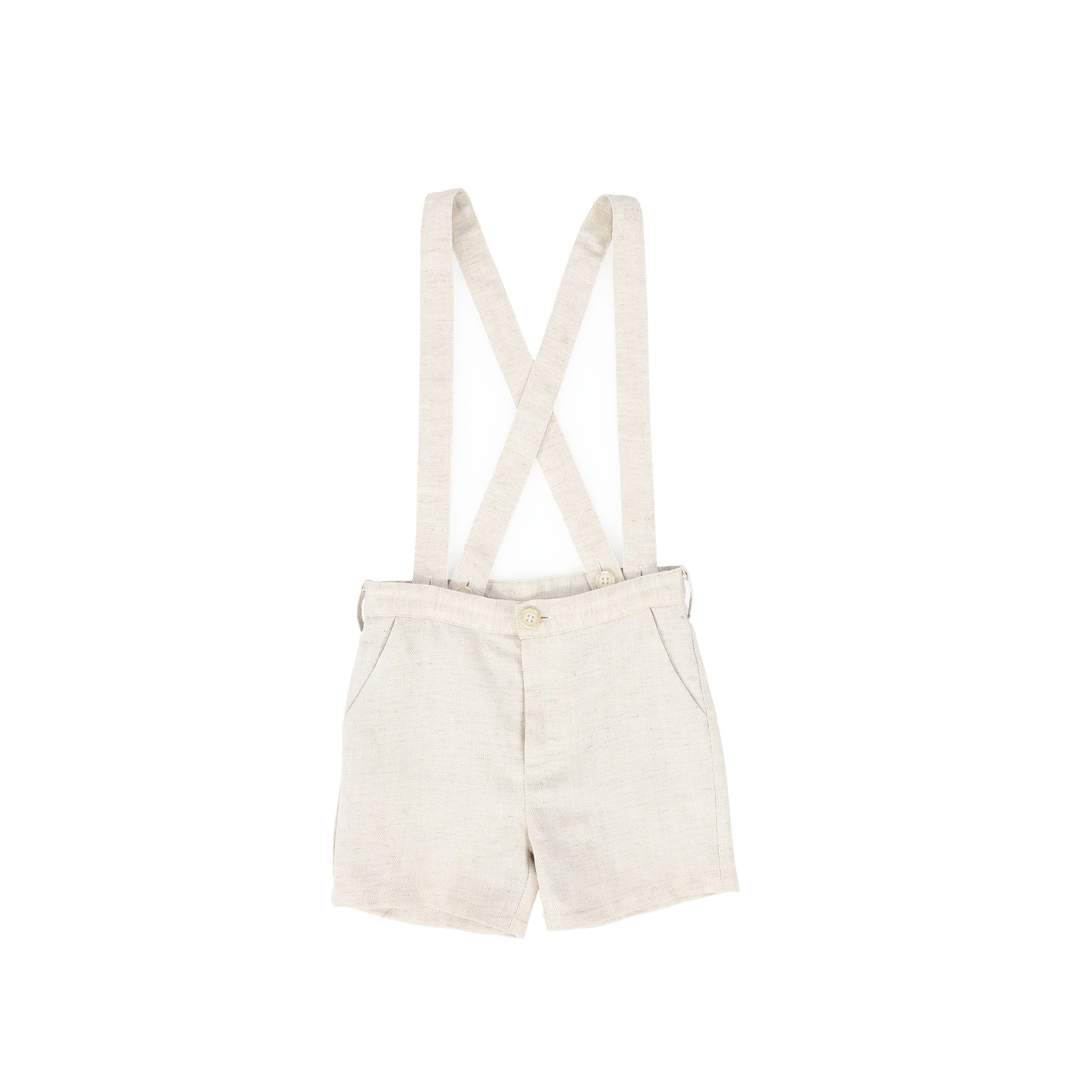 Linen herringbone shorts w/ suspenders